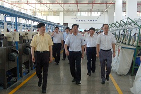 【本報訊】 7月21日,泉州市四套班子主要領導在晉江市及深滬鎮(zhèn)各級領導的陪同下,來我司檢查觀摩新工業(yè)園異地技改項目建設情況。 市領導一行首先來到新工業(yè)園規(guī)劃藍圖前,整體了解了新工業(yè)園基本規(guī)劃及項目建設進展情況:潯興新工業(yè)園占地面積500畝,于2007年初動工興建,目前已完成項目一期建設,建成主廠房、員工宿舍樓、職工活動中心以及排水渠、污水處理站等園區(qū)配套項目,已建成項目都已順利投入使用,二、三期工程也已在設計當中,于后將陸續(xù)開工,整個工程預計將于2012年全面建成。