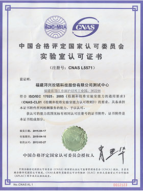 5月12日,測試中心收到中國合格評定國家認可委員會(CNAS)發來通過復評、擴項審核的通知及證書,標志著公司測試中心的發展買上了新臺階。